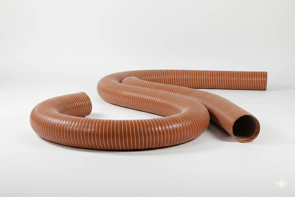 Mangueira de alta performance fabricada em uma camada de tecido de vidro revestido com silicone, reforçada com espiral interna em aço zincado. Essa construção garante resistência mecânica, flexibilidade e durabilidade superiores, mesmo em condições extremas de operação.